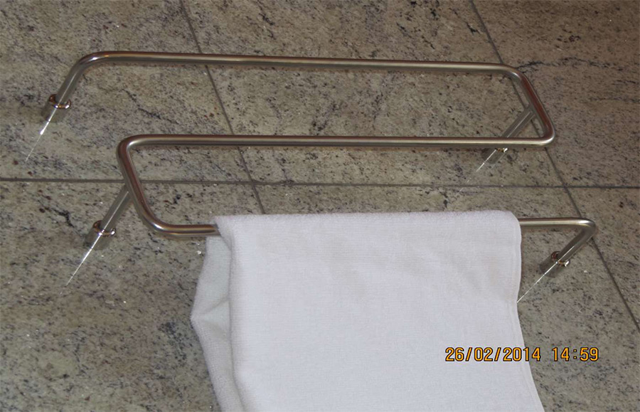 Držač ručnika u kupaonici Pogodno za apartmane i hotele - Držač sa 3 horizontalne šipke Ø 10 veličine 400 x 200 mm, cijena 450,00 kn/kom + PDV - Držač sa 5 horizontalnih šipki Ø 10 veličine 400 x 400 mm, cijena 600,00 kn/kom + PDV