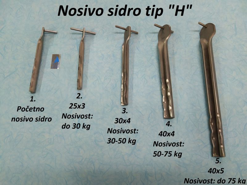 - Sidra su atestirana i posjeduju statički proračun nosivosti na određenopm kraku od podloge. Nosivist sidra je 30 - 50 - 75 kg.