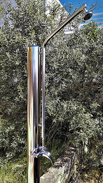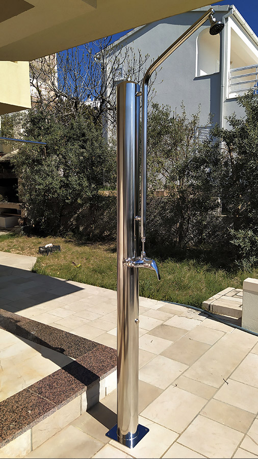 Materijal izrade: nehrđajuči čelik AISI 316 polirani. Tijelo tuša je spremnik Ø114.3x2000 mm kapaciteta 20 lit.